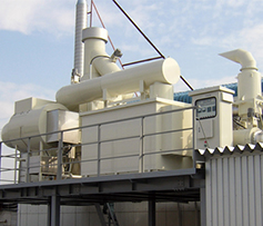 有機廢氣先通過熱交換器預(yù)熱到200~400℃,再進入燃燒室,通過催化劑床時,碳氫化合物的分子和混合氣體中的氧分子分別被吸附在催化劑的表面而活化。由于表面吸附降低了反應(yīng)的活化能,碳氫化合物與氧分子在較低的溫度下迅速氧化,產(chǎn)生二氧化碳和水,從而達到廢氣處理的目的。