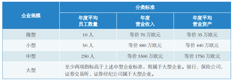 企業(yè)分類標準及適用財務報告準則。塞爾維亞《會計法》按企業(yè)規(guī)模(員工數(shù)量、營業(yè)收入和營業(yè)資產(chǎn)等指標)將企業(yè)分為微型、小型、中型和大型企業(yè)四類。