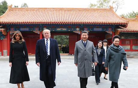習(xí)近平和夫人彭麗媛陪同美國總統(tǒng)特朗普和夫人梅拉尼婭參觀故宮博物院