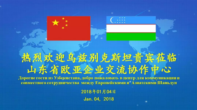 2018年1月4日,山東省歐亞企業(yè)交流協(xié)作中心(以下簡稱“歐亞中心”)相關(guān)負責人與烏茲別克斯坦內(nèi)閣部長卡西莫夫?伊利佐特和塔什干副市長阿卜杜馬季多夫?洛夫斯?jié)h一行進行合作洽談,雙方就貿(mào)易合作、“一帶一路”事業(yè)發(fā)展合作聯(lián)盟平臺建設(shè)等進行了深入交流。