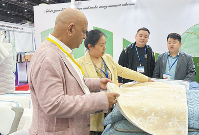 在家紡展區(qū),中企帶來的凝膠睡眠產(chǎn)品吸引了不少客商的目光。他們紛紛向企業(yè)負責人詳細了解產(chǎn)品原料和性能特點,表達出與中國同行的合作意愿。“我的工廠使用了很多中國設備和中國原材料。”一名來自埃及的客商表示,希望在展會上找到更多優(yōu)質(zhì)原材料,也期待在母嬰用品行業(yè)發(fā)現(xiàn)新的商機。他說:“在中東地區(qū),從日常生活到工業(yè)生產(chǎn)的很多產(chǎn)品都來自中國。中國可靠的供貨渠道,為維護全球產(chǎn)業(yè)鏈供應鏈穩(wěn)定作出重要貢獻。”