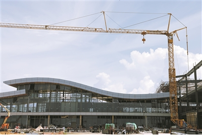 記者在項(xiàng)目現(xiàn)場(chǎng)看到,炎炎烈日下,中特兩國(guó)工人正在緊張施工。塔吊之下,宛若巨型波浪的航站樓雛形初現(xiàn)。部分建筑已安裝明亮的玻璃幕墻,藍(lán)天白云映照其上。“通過(guò)大量采用落地式玻璃幕墻,航站樓室內(nèi)利用自然光照明率將達(dá)到82%。”多巴哥國(guó)際機(jī)場(chǎng)項(xiàng)目經(jīng)理彭才柱表示,幕墻還能同時(shí)承受58米/秒的極高風(fēng)速帶來(lái)的風(fēng)壓,在節(jié)能、美觀(guān)的同時(shí)又結(jié)實(shí)耐用。
