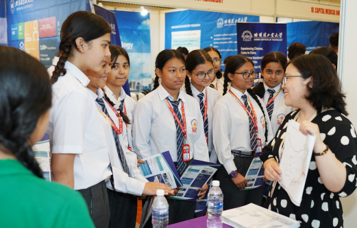 6月18日,在尼泊爾首都加德滿(mǎn)都舉行的2024中國(guó)高等教育展上,尼泊爾學(xué)生與中國(guó)高校代表互動(dòng)。(新華社發(fā))