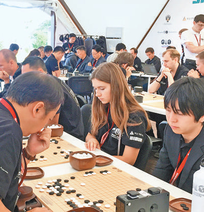 東方經(jīng)濟論壇國際圍棋比賽現(xiàn)場,各組參賽選手正在緊張對弈。(人民日報記者 吳焰 攝)
