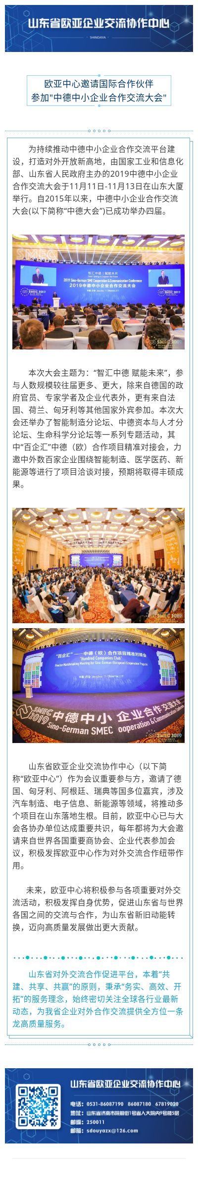 歐亞中心邀請國際合作伙伴參加"中德中小企業(yè)合作交流大會"