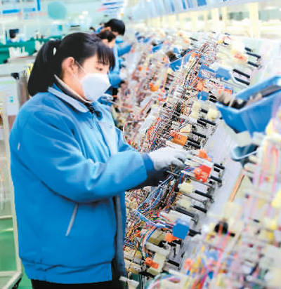 在位于青島即墨的京信電子有限公司,工人們將一串串各種顏色的電線進行加工、組裝、調(diào)試,隨后這些加工好的線束被打包裝進周轉(zhuǎn)箱內(nèi),并堆成托盤準備裝進集裝箱內(nèi)運往國外。據(jù)了解,這批產(chǎn)品對時效還有著很高的要求,當天生產(chǎn)的產(chǎn)品必須要在當天發(fā)送到韓國客戶手里。