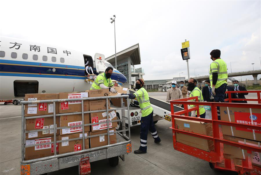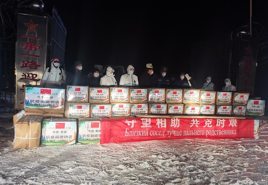面對(duì)肆虐的疫情,一批批中方物資跨越天山,穿越伏爾加河,飛越高加索山脈,抵達(dá)亞歐抗疫一線。中國(guó)向格魯吉亞捐贈(zèng)的1000套新冠病毒檢測(cè)試劑盒已投入使用;山東省向哈薩克斯坦捐贈(zèng)10萬只口罩和6000件防護(hù)服;烏魯木齊市向哈捐贈(zèng)的18萬只口罩已經(jīng)霍爾果斯口岸運(yùn)往防疫一線;在中吉邊境吐爾尕特口岸,由新疆維吾爾自治區(qū)援助的抗疫物資交付吉爾吉斯斯坦;由馬云公益基金會(huì)和阿里巴巴公益基金會(huì)捐贈(zèng)的100萬只口罩和20萬份檢測(cè)試劑由俄國(guó)防部專機(jī)送抵俄羅斯……從政府到企業(yè),紛紛伸出援助之手。