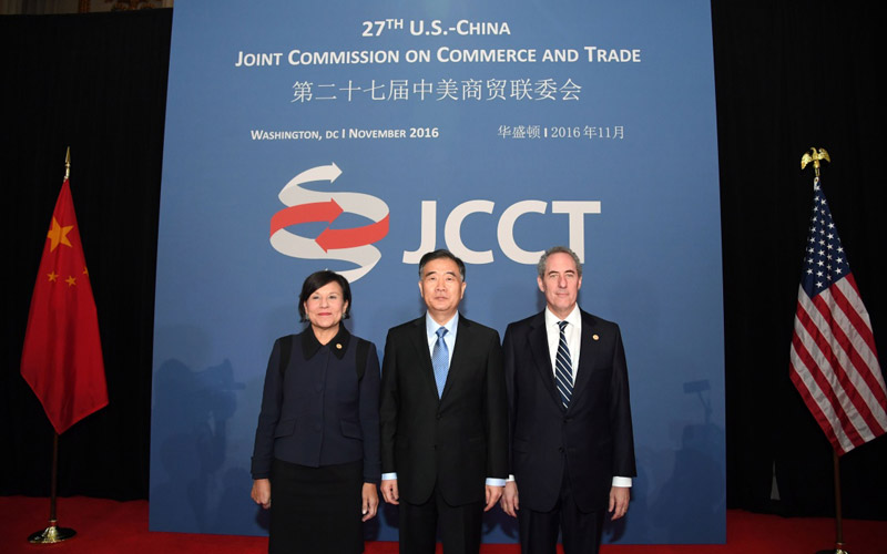汪洋與美國商務(wù)部長、貿(mào)易代表共同主持第27屆中美商貿(mào)聯(lián)委會2016-11-24